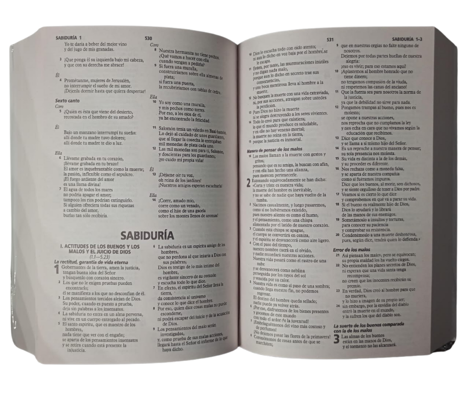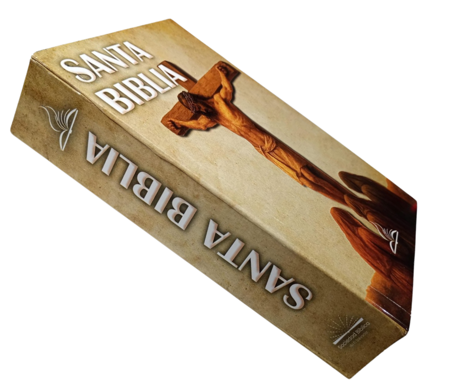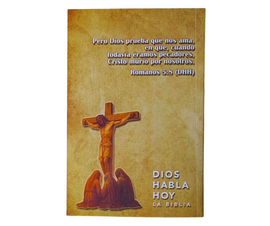 Biblia económica Dios Habla hoy que incluye: 39 libros del Antiguo Testamento, 27 libros del Nuevo Testamento y 7 libros deuterocanónicos; Con medidas de alto 20.3 cm, largo 13.5 cm y ancho 4.5 cm, papel periódico y pasta cartón