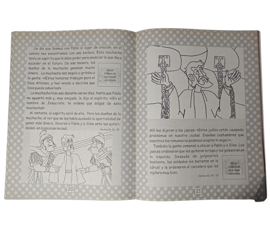 Este libro presenta la historia de Pablo con dibujos para darles color, recortes para poder colocar en cada ilustración, base Bíblica por cada acontecimiento.