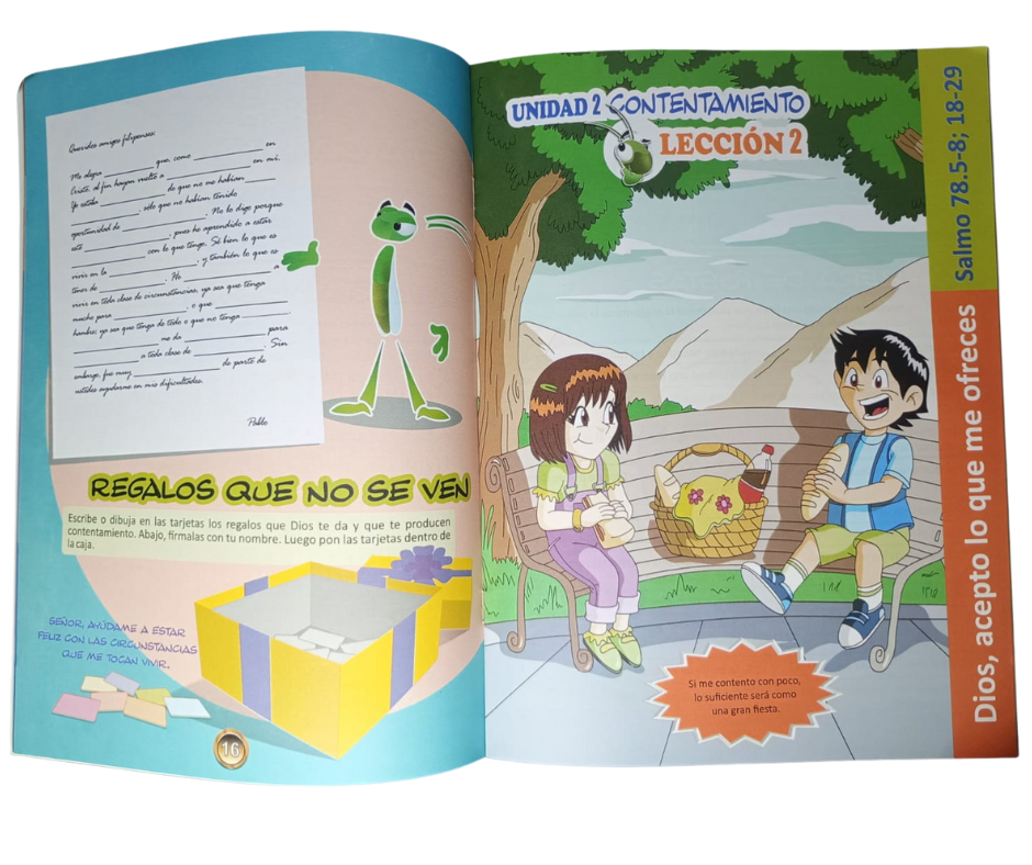 • Cada cuaderno a todo color para el alumno incluye 13 lecciones correspondientes a un trimestre, para un total de 52 semanas.