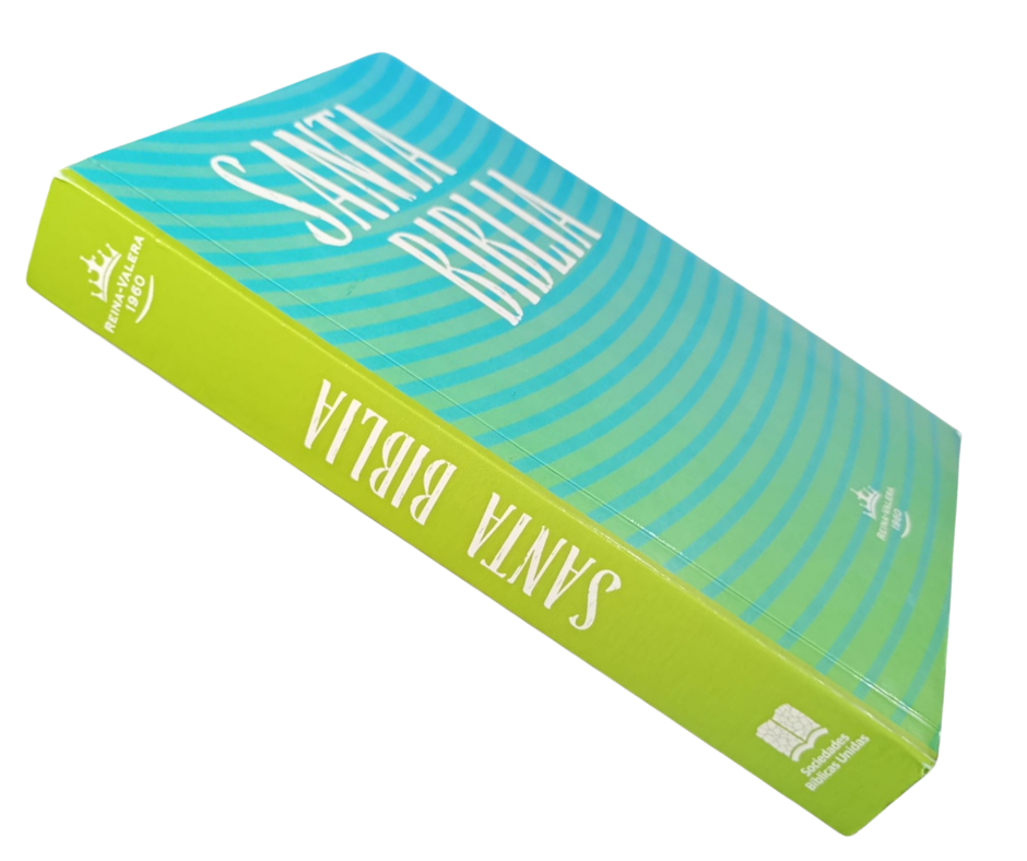 Biblia Reina Valera 1960 papel blanco con alto de 20.2 cm, largo 13.2 cm y de ancho 3 cm y su pasta de cartón.