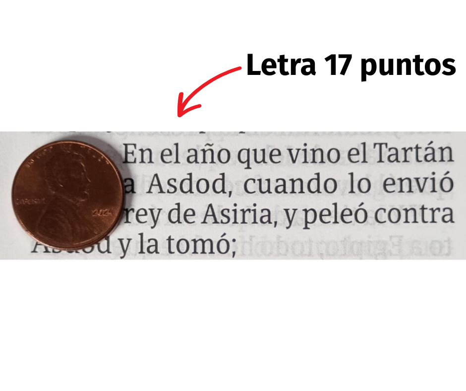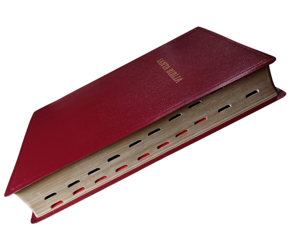 Biblia Reina Valera 1960 con los siguientes elementos:Palabras de Jesús en rojo, índice dactilar, calendario anual de lectura Bíblica, panorama Histórico de la Biblia, referencias cortas, concordancia, mapas a color, palabras de Aliento para tu caminar con Dios, armonía de los Evangelios, síntesis de cada libro de la Biblia, tabla de pesos y medidas, cómo entender la Biblia, letra super gigante 17 puntos.